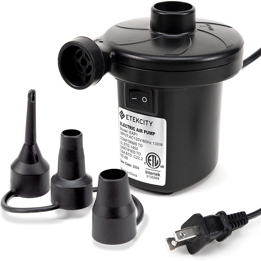 Etekcity Electric Air Pump Air Mattress Portable Pump for Inflatables Couch, Pool Floats, Blow up Pool Raft Bed Boat Toy, Quick-Fill AC Inflator Deflator with Nozzles, 110-120 Volt.