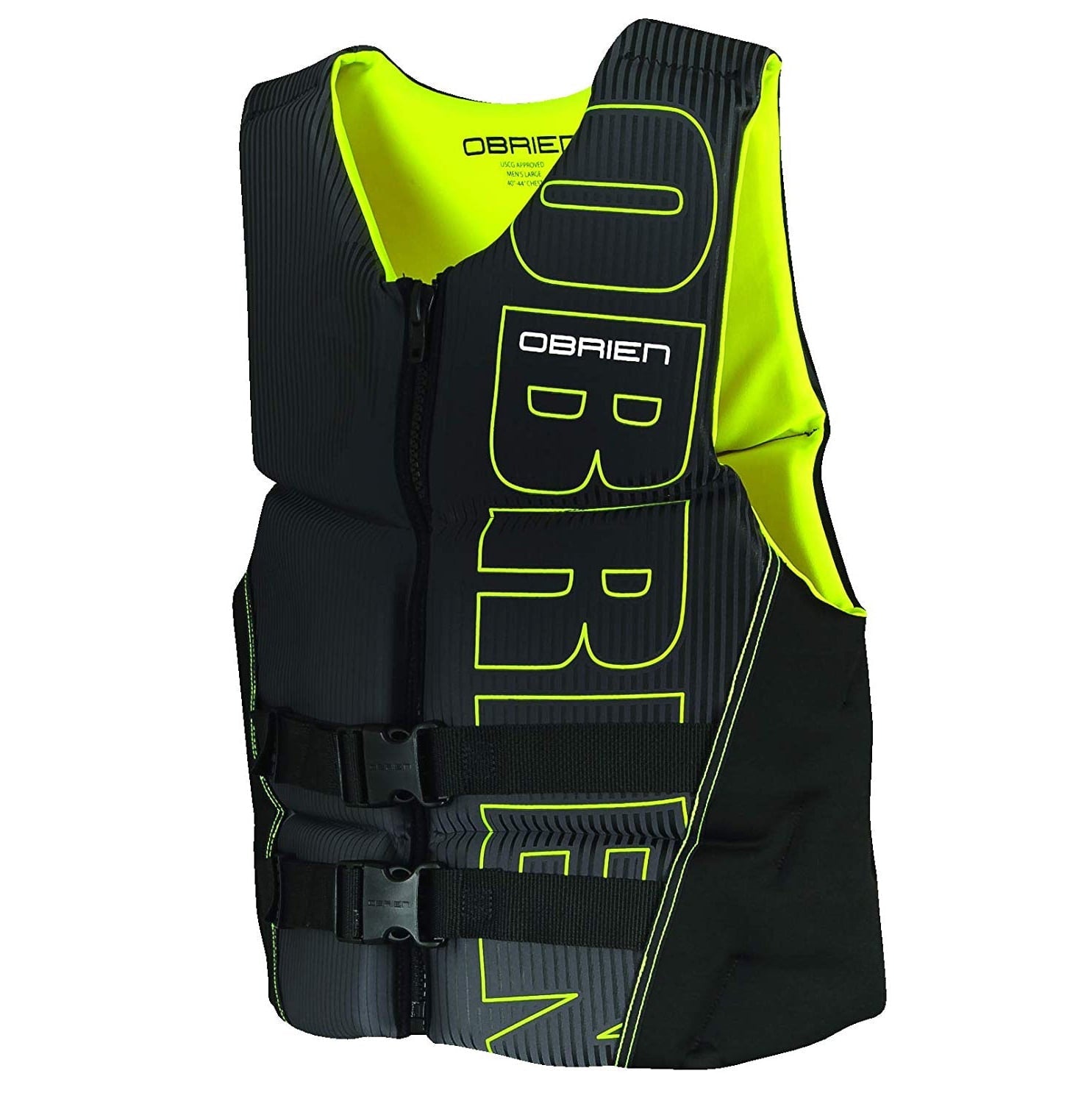 There's nothing better than a relaxing afternoon on the water. Safely participate in your favorite aquatic activities with O'Brien Watersports Men's Flex V-Back Lightweight Life Jacket. Perfect for wakeboarding, waterskiing, tubing, swimming, and more. From kayaking to jetskiing to swimming, enjoy the open water with this traditional life jacket. Featuring a split V-back, this jacket moves with you. A large zippered closure and 2 adjustable belts secure a nice and snug fit that comfortably hugs your body. Multiple front and side hinges enhance your range of motion as you row, paddle, or swim. Use the PWC lanyard attachment ring to latch keys and other belongings to your vest. Crafted from a soft, breathable, and eco-conscious material, this buoyancy aid offers flotation for men with chest measurements of 44 to 48-inches. Lazily float along with this Coast Guard and Transport Canada-approved O'Brien Watersports Men's Flex V-Back Lightweight Life Jacket.