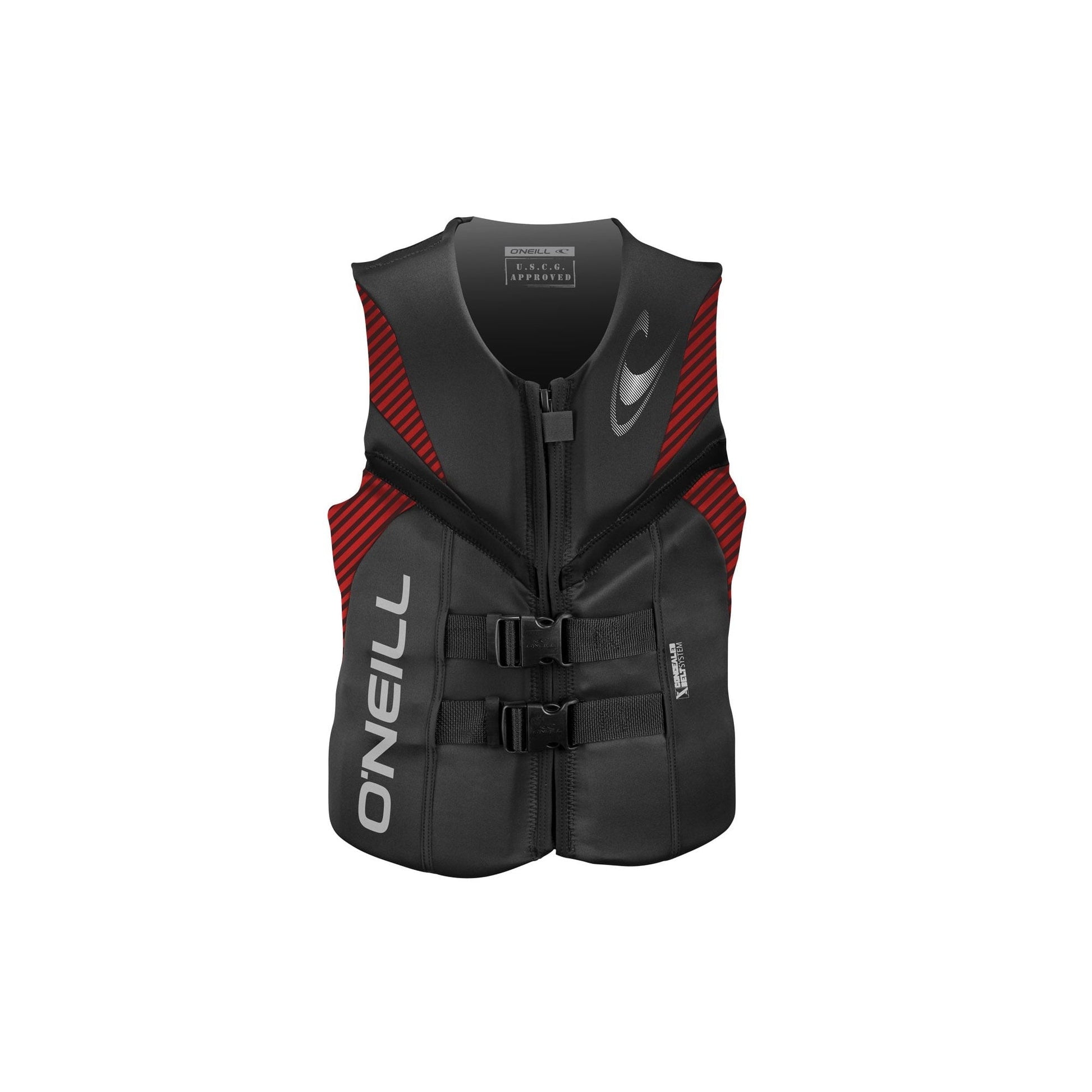 O'Neill Reactor USCG Wakeboarding & Waterskiing Life Vest, Size Large, Black/Red